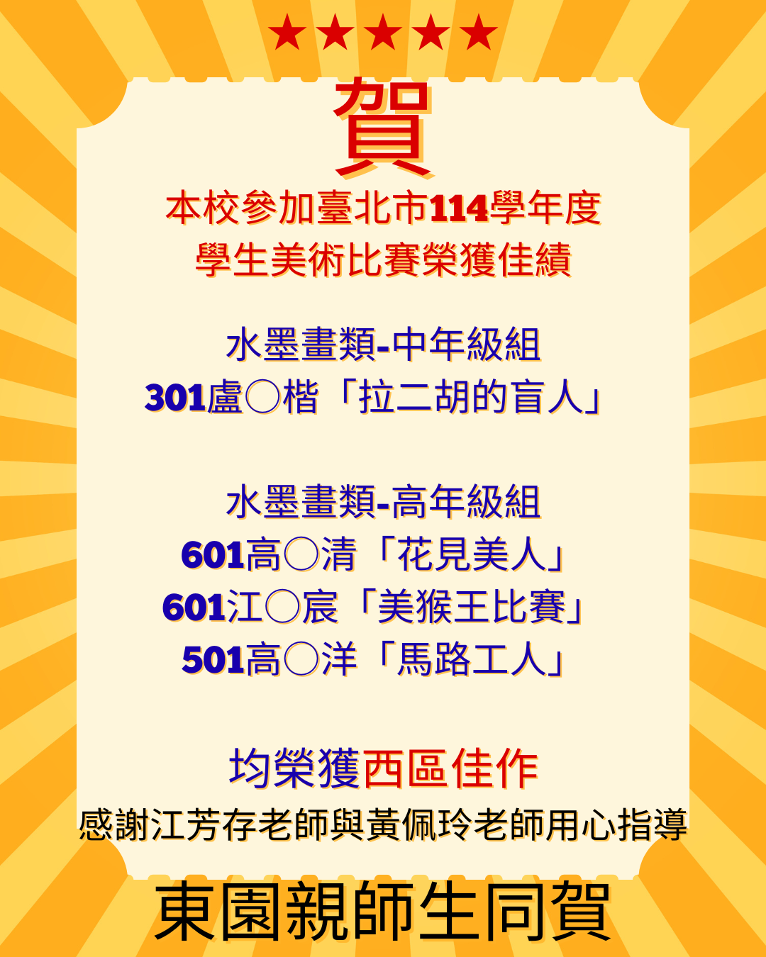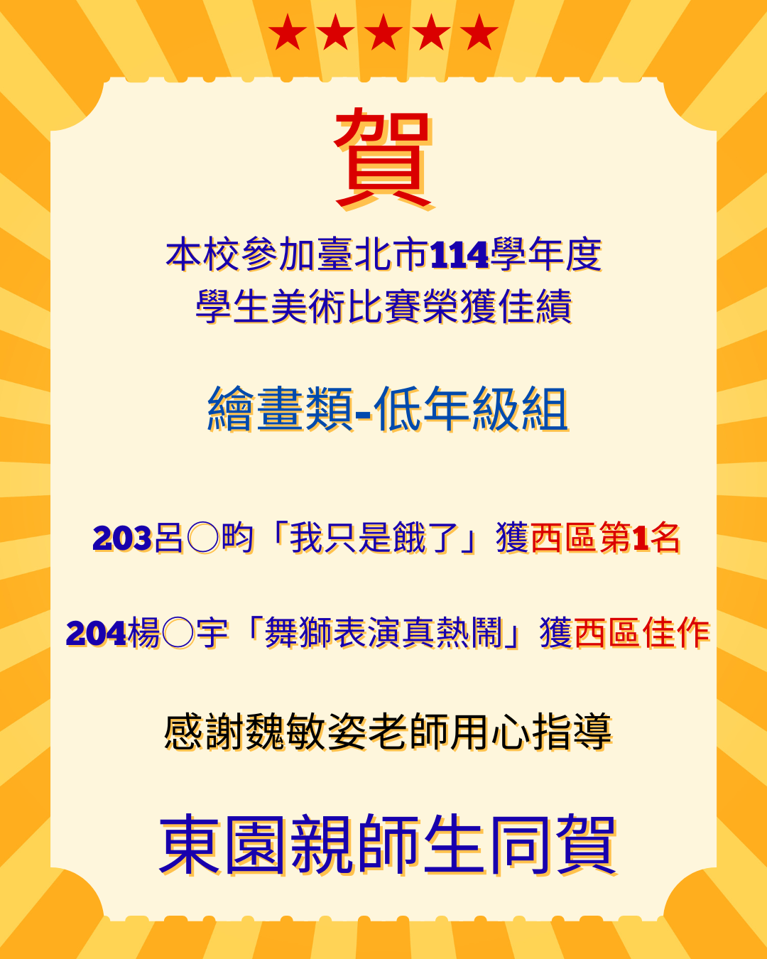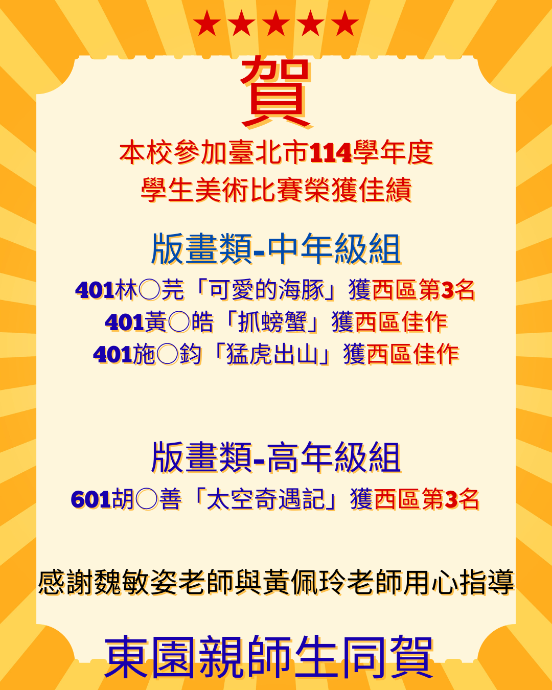 賀!臺北市五項藝術比賽-美術項目作品勇奪佳績!🎉🎉🎉